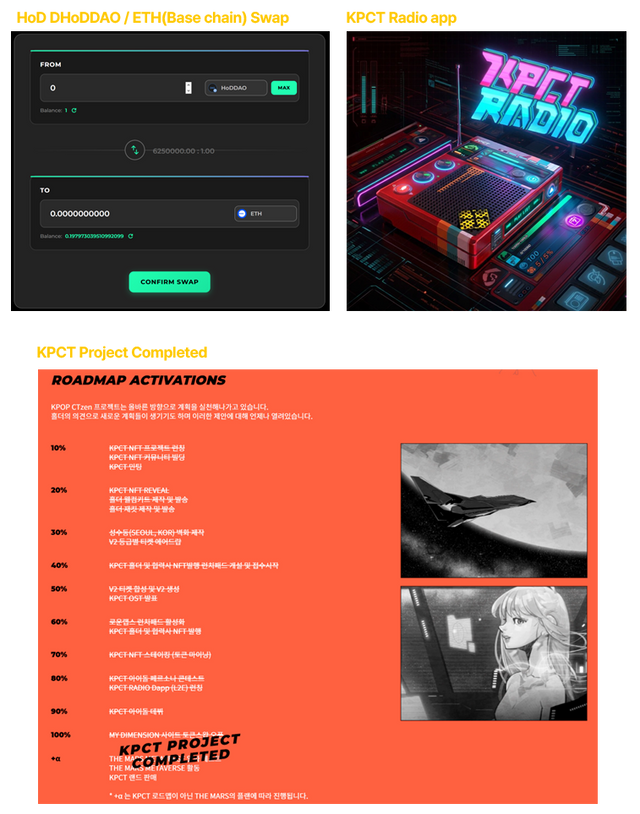 Official Service Launch: DAO & GOVERNANCEWe are officially opening the internal ecosystem to support autonomous operation by HoDDAO holders.Key Features: Board, HOTTO, Auction, Mini-game, Chatting, and Banner.Governance: Fully integrated.Token Swap: SSP / DMS / HoDDAOSSP ↔ DMS: Swap support available via MY DIMENSION.DMS → HoDDAO: Purchase HoDDAO using DMS via Mint.Club.Cross-Chain Swap: HoDDAO / ETH (Base Chain)Swap support between HoDDAO and ETH (Base Chain) available via MY DIMENSION.KPCT Radio App: Official ReleaseThe KPCT Radio app is now officially available for download:Google Play: Download hereApple App Store: Download here